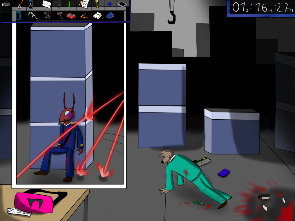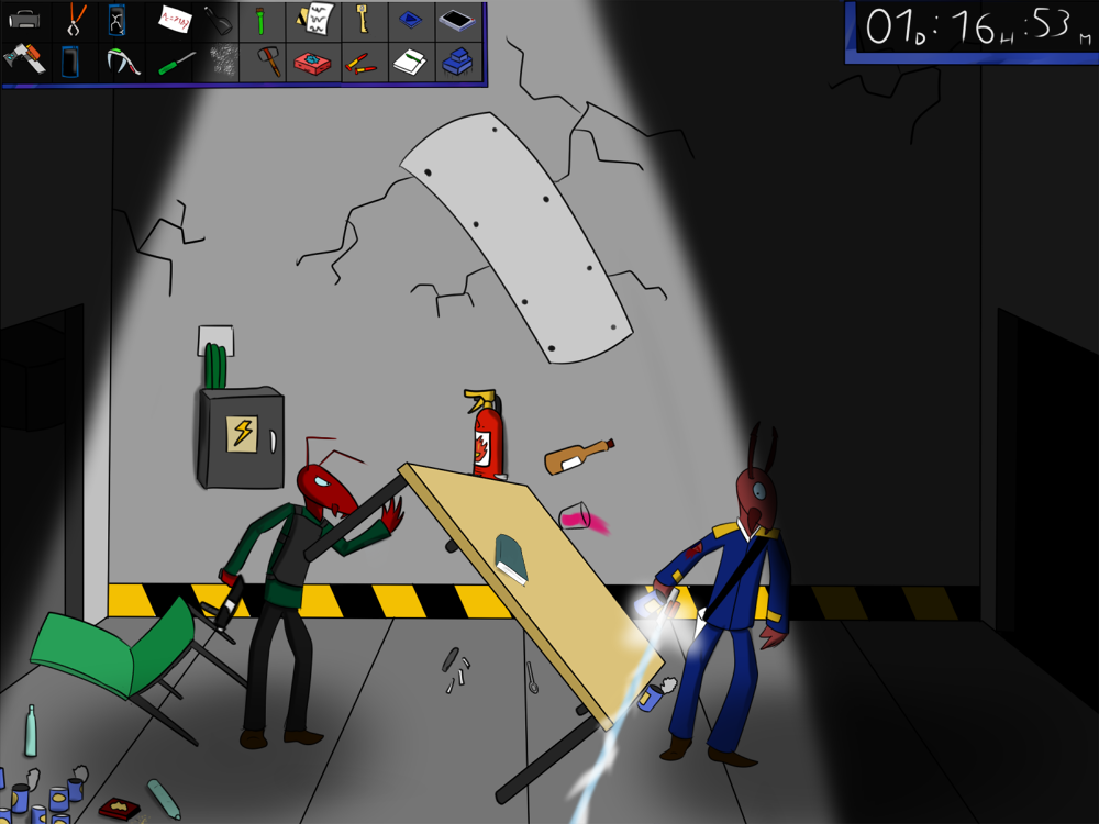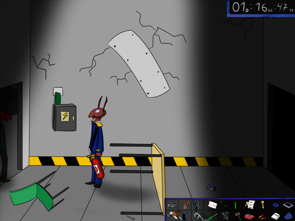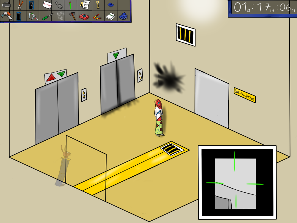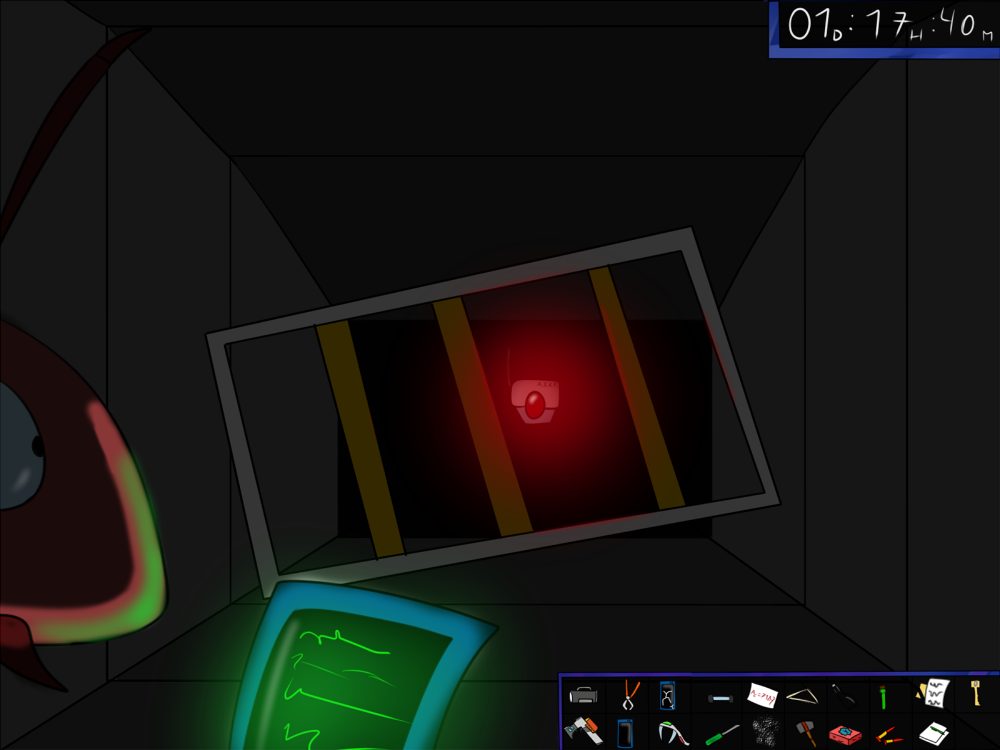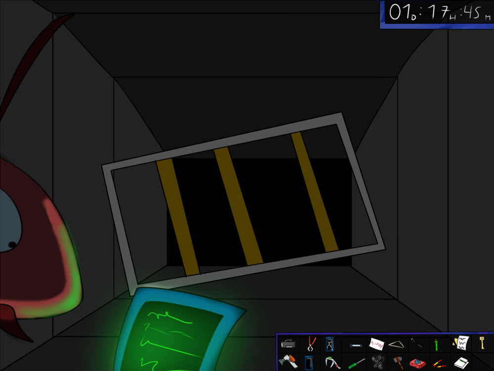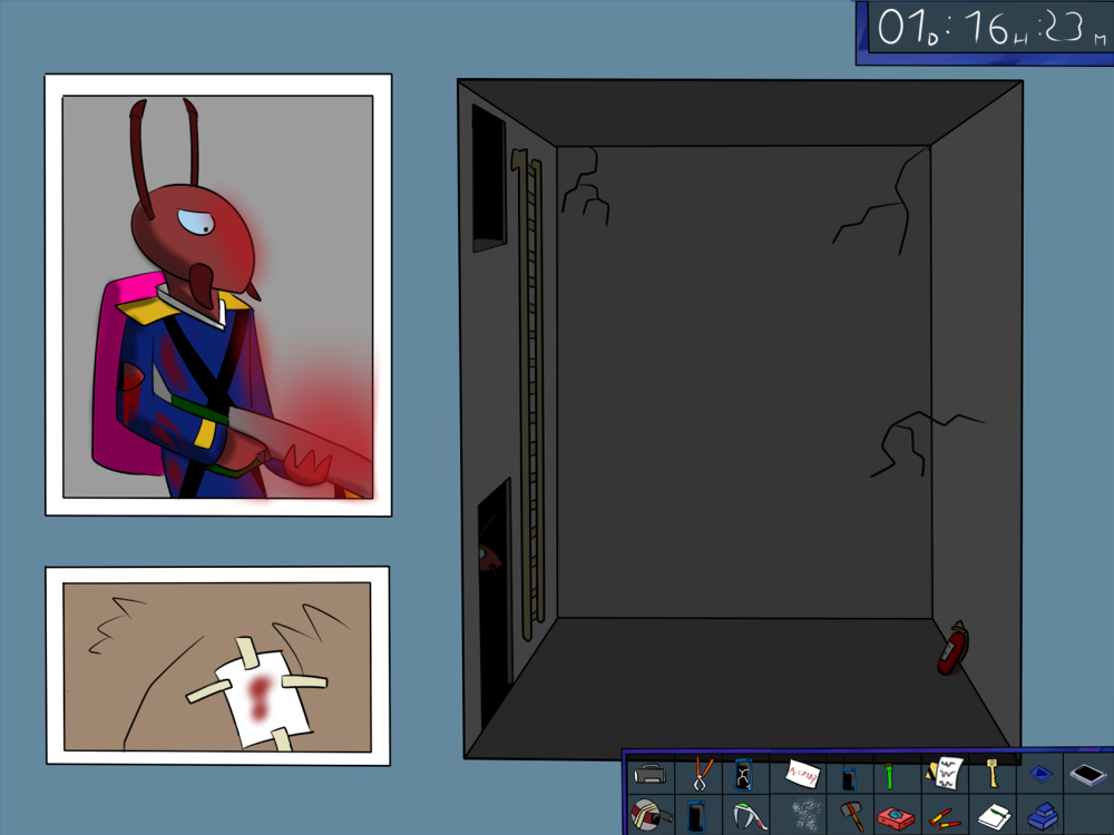 The last time, the janitor jammed the opening mechanism of the door with a piece of metal, then placed the bed behind so it couldn't be forced from outside. Tiak does the same, jamming the door with some random debris from the pile, but moving the bed would require pushing the corpse out, so he lets it be for now.