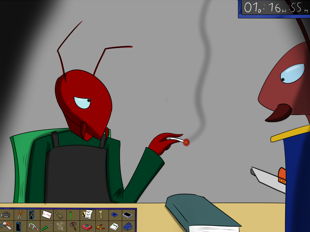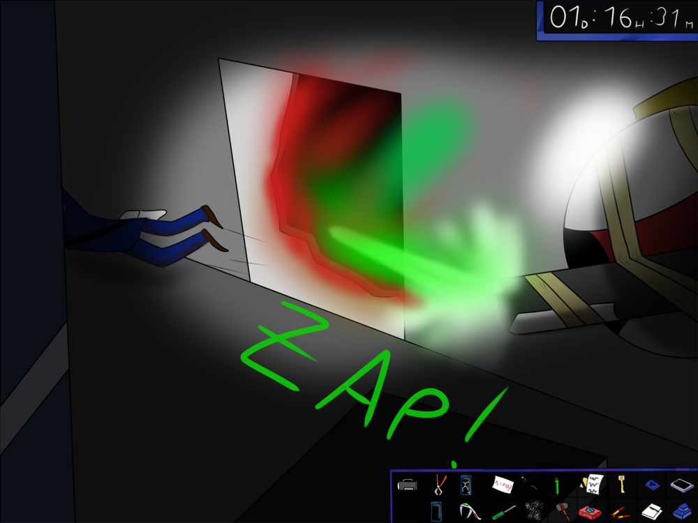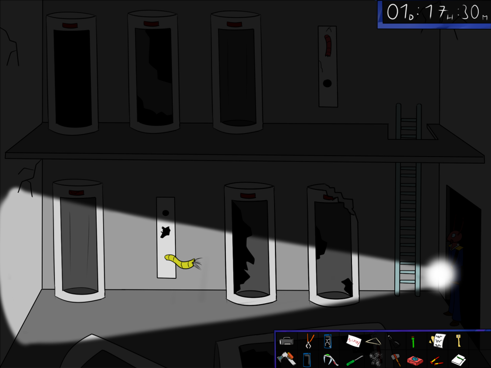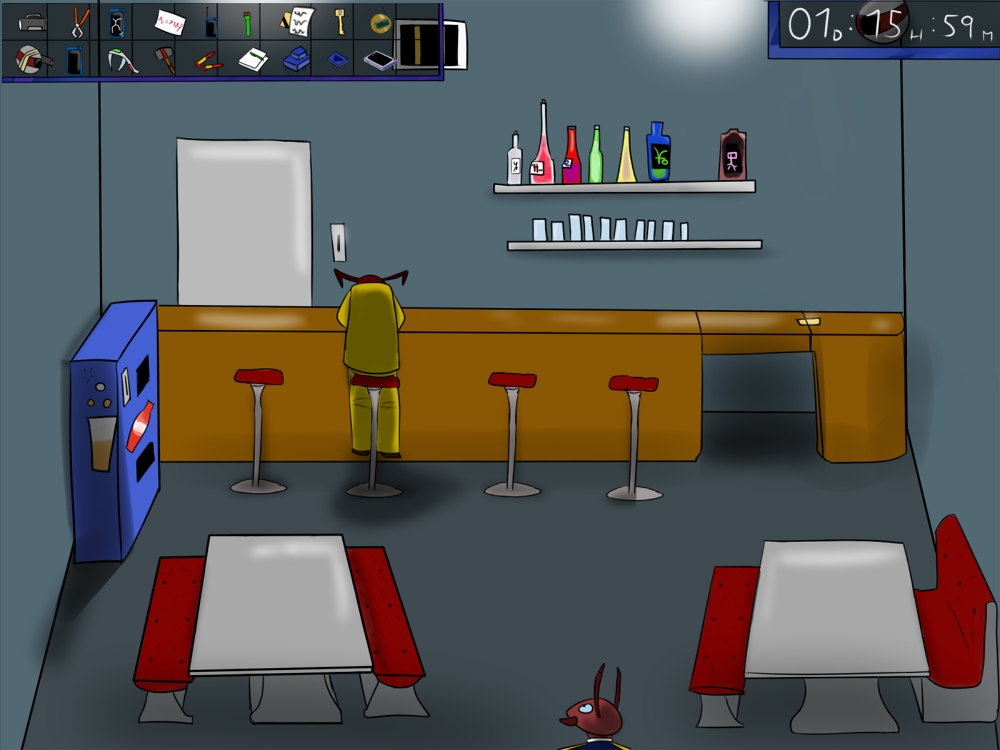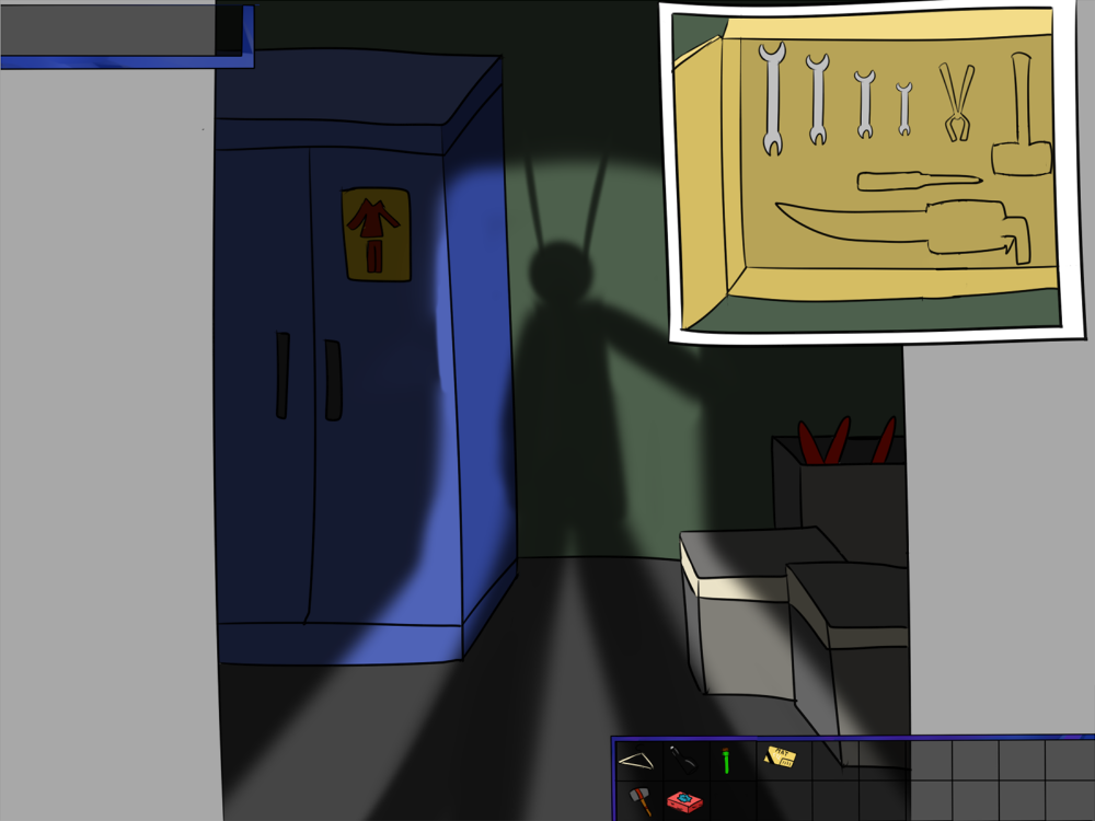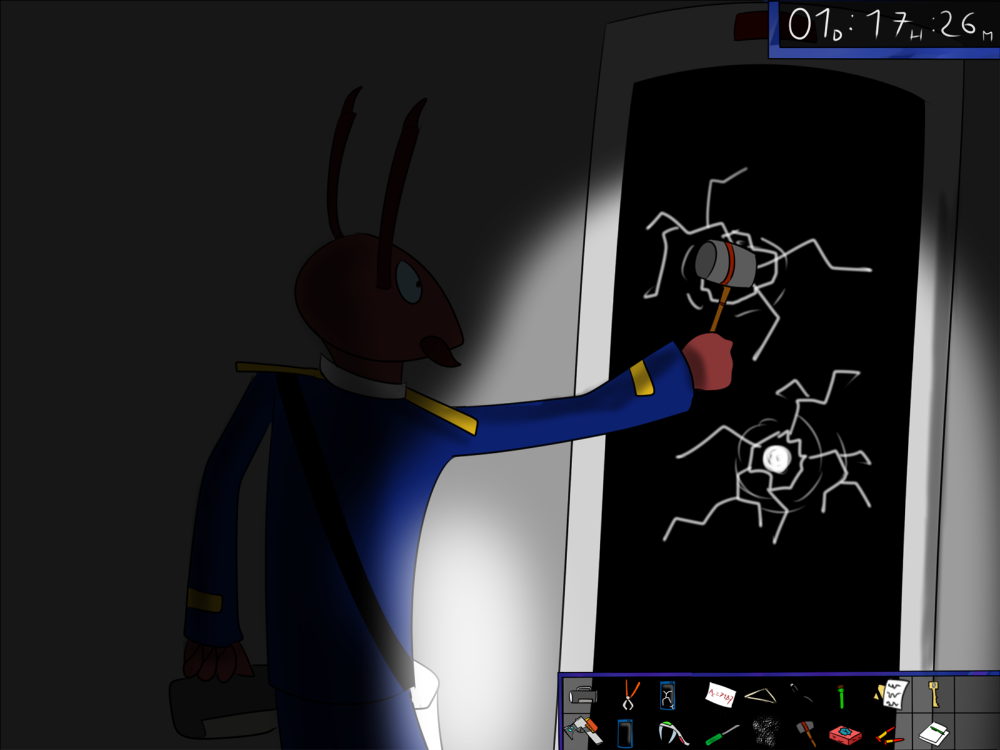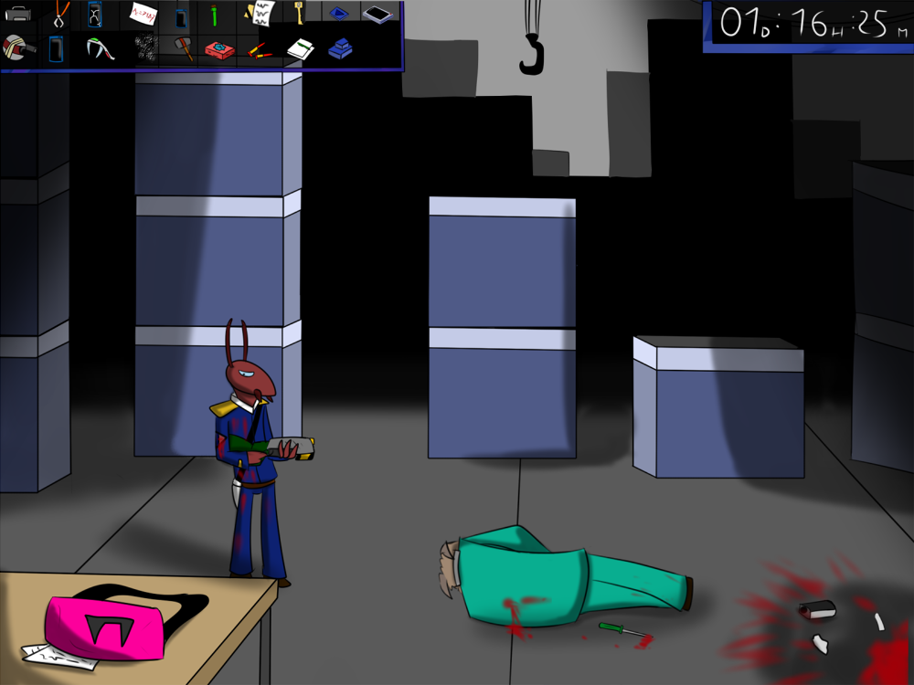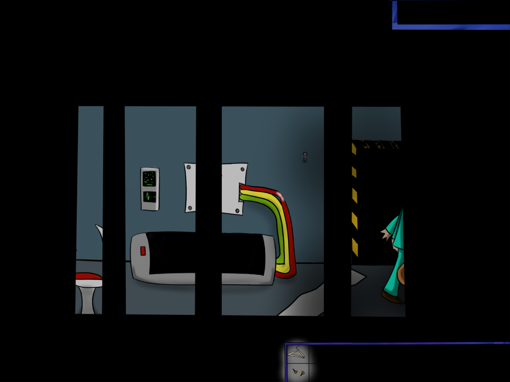 The last time, the janitor jammed the opening mechanism of the door with a piece of metal, then placed the bed behind so it couldn't be forced from outside. Tiak does the same, jamming the door with some random debris from the pile, but moving the bed would require pushing the corpse out, so he lets it be for now.