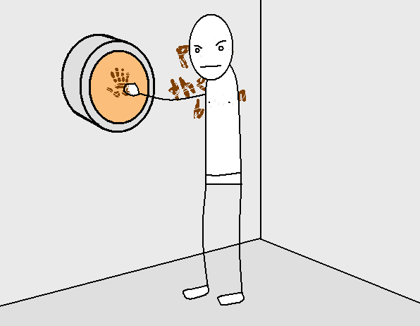 You thrust one of your newfound appendages button-ward. Sadly, this seems to accomplish nothing, other then to get some of the brown stuff on your... your... hand. This thought disgusts you profoundly.