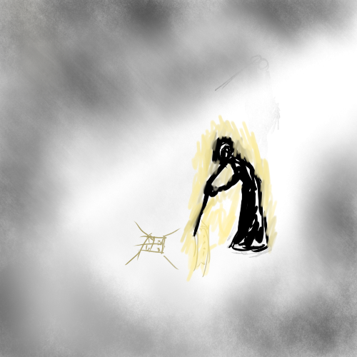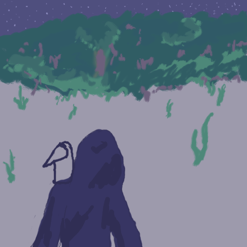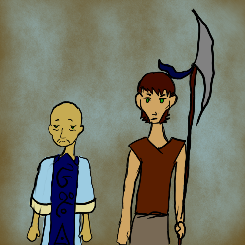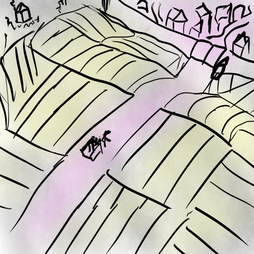 Luckily, I don't have to wonder for long, as Uluaris flings open the door and beckons to us. As soon as I step outside I see that there's a cart with a strange creature in front of it. Uluaris grabs my arm and pushes me into the back of the cart, then covers me with heavy blankets. "dont move" he says.