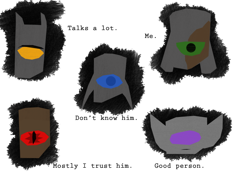 "Then it appears our, their, and your efforts are all one," says Random. "I am sure you could find it in your bountiful heart to quarter your coconspirators. All of them, including the heavenly ones."