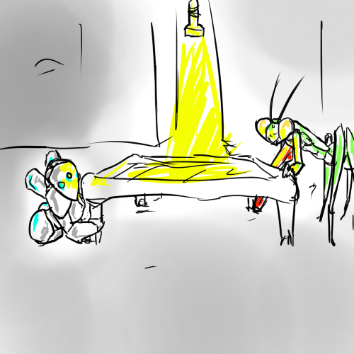 Oh my god what are you doing! Don't you realize traumatic insemination in your condition could lead to death? Not to mention your making out with a robot you deviant. Hot.