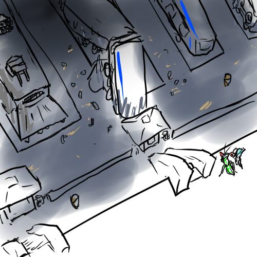 The whole city's fucked. Some sort of orbital bombardment ruined it. I don't know if anybody survived. Fuck. I am scared. I don't know what to do.