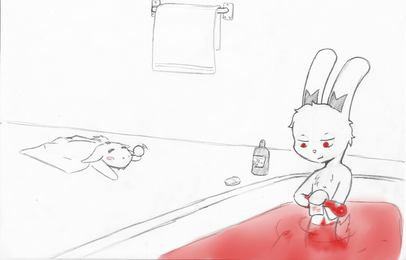 >I moved her into the bathroom and checked her pulse, every thing seems ok... I'm not an expert, but its beating normally. I left her on her back and started drawing the water for my bath... she lets out a small groan and flops on to her belly then snores lightly... Washing up is nice... It feels good to be clean again... Eventually I get to my junk, still erect, I shift my eyes towards the girl... Well She wont mind since she's asleep right? I wash my genitals quite vigorously, so much that... Why am I peeking around the bush with you? It is our body after all. [Blake masturbates]. I finish cleaning, rinsing, and picking up after my self. The clothes are soaking in fresh water and Pun-pun's still sleeping.
