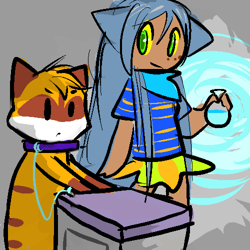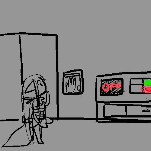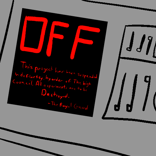 >After putting some pressure on the first chain, it breaks with a swift yank. POP. POP. the second chain gives away soon after. She lands on the bottom of the pod. Examining it. It appears to be made out of glass, but the inside of it is sticky instead of smooth, and there is strange blue clear glowing goop at the bottom. And as far as she can tell, the pod door open, is what let out all of the glowing gunk.