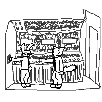 The room's walls are covered with a machine that looks like it has more to do with supervillainy than anything resembling legitimate science.