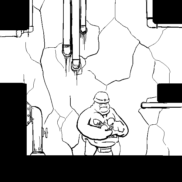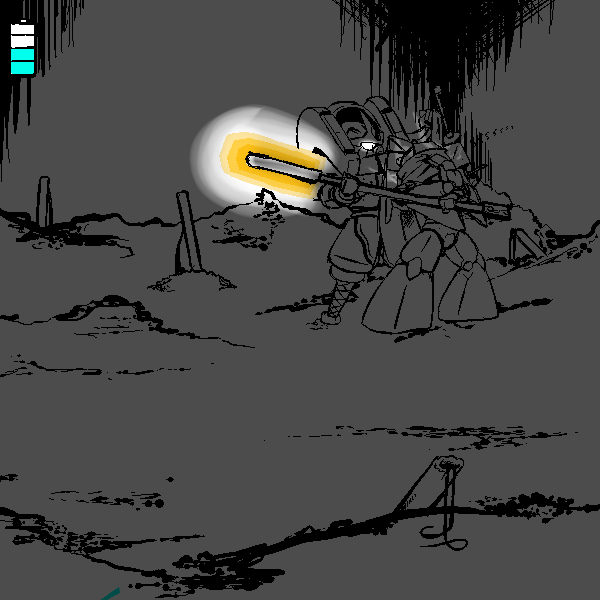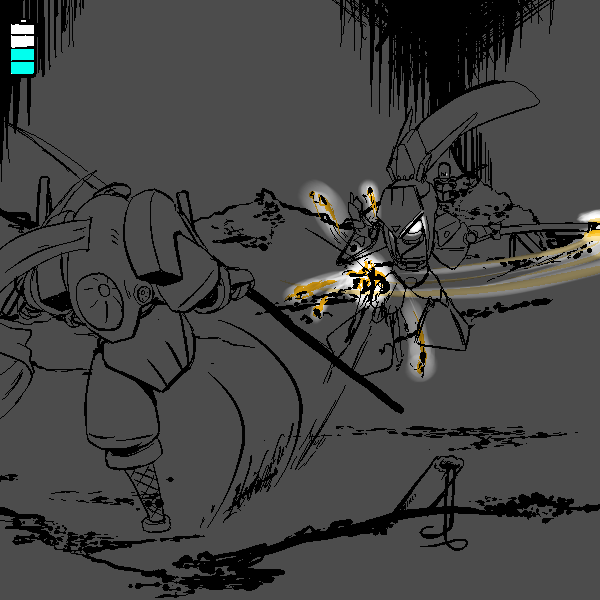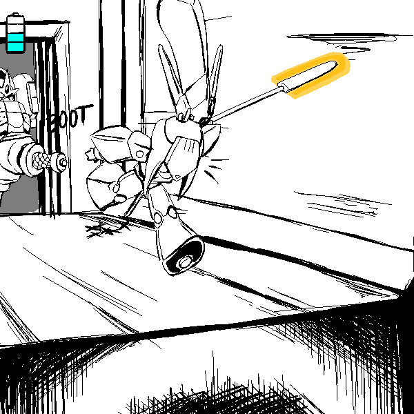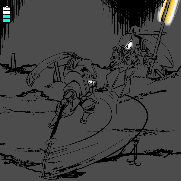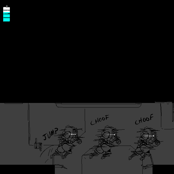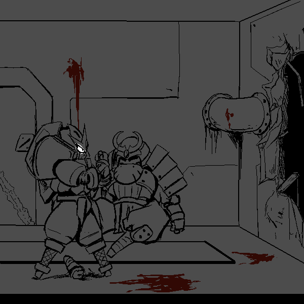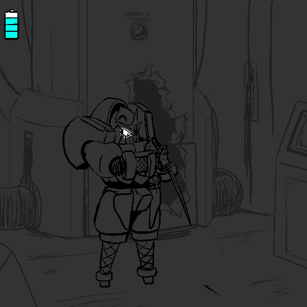 I am the Mark 4 Ninjutsu Operations Bionic Infiltrator, designation "Manewis." I am, to my knowledge, the sole survivor of Momotaro Unit, a special infiltration unit tasked with entering Onigashima and destroying it from the inside. My role was Fire Support. I am equipped with a COLLAPSIBLE NAGINATA, a forearm mounted KUNAI LAUNCHER, Shoulder mounted SHURIKEN LAUNCHERS, SHORT RANGE TELEPORTER, PERSONAL CLOAKING SYSTEM, on board MAP, and COMMUNICATION SUITE. Our mission was not successful. 100 years ago this room was to be our last stand, but through the prolonged fighting, I found my POWER CELL depleted, and was forced to enter a dormant mode to conserve power. I was unable to help Yamazaru, Inu, and Kiji as the demons broke in.