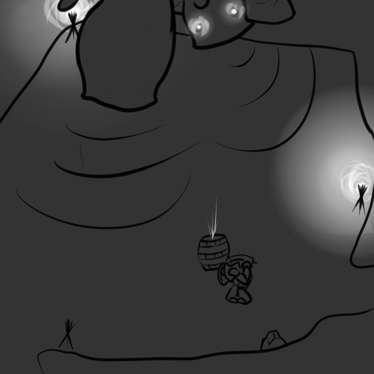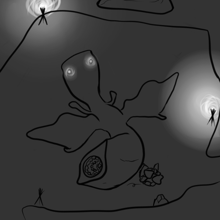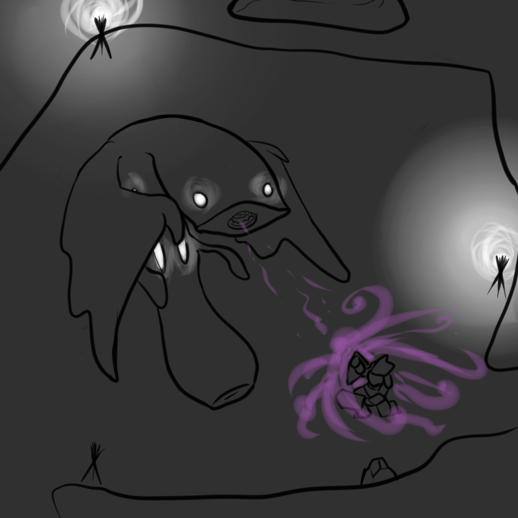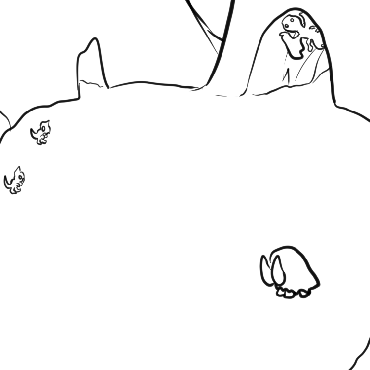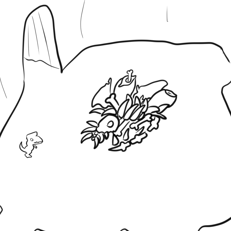 You spit out a bone toward the Baggi. It regards it curiously, and kind of stupidly. They aren't very smart. You aren't sure if he will figure it out!