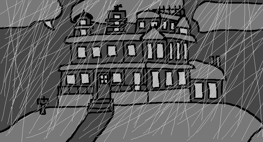 I'm in a hut of sticks and straw, with a dirt floor. There's a bed (upon which I currently repose), a table covered with assorted beakers and flasks half-full with various brightly colored liquids (and a few crude medical implements), a door to the outside, and a single window