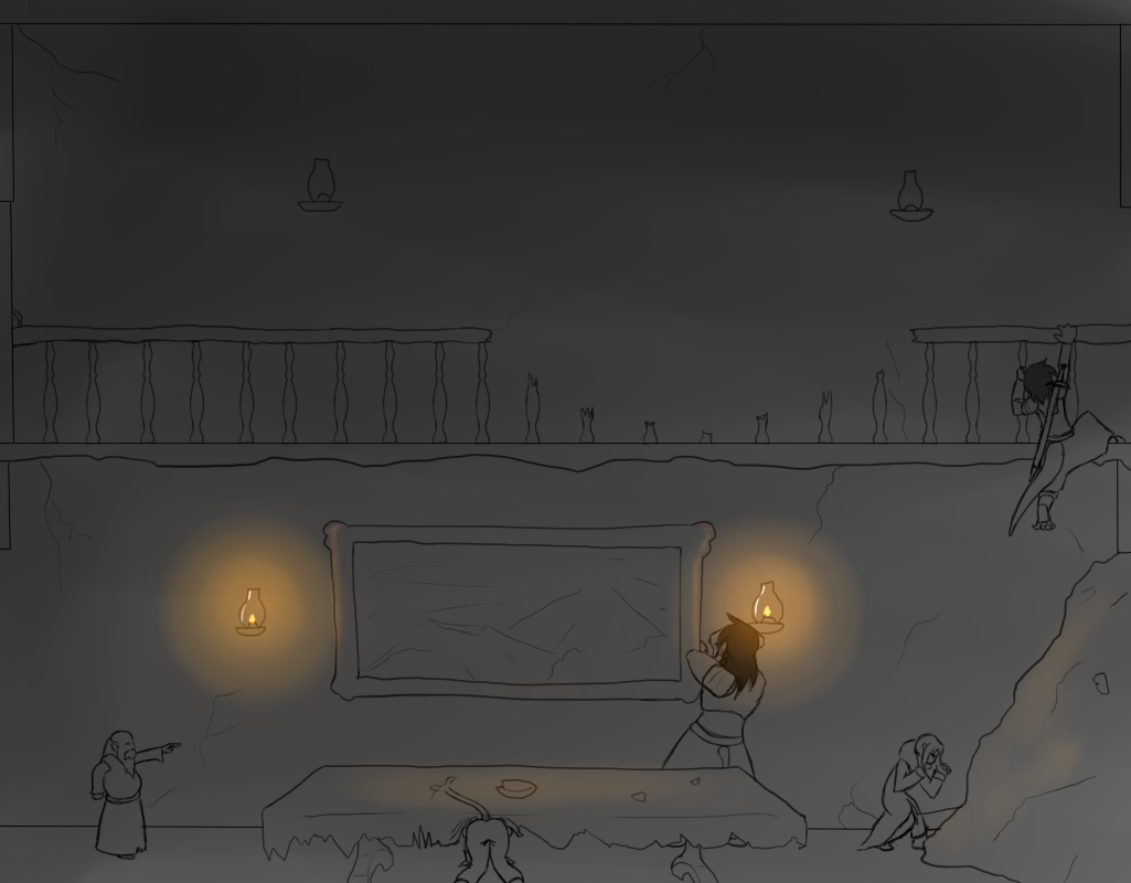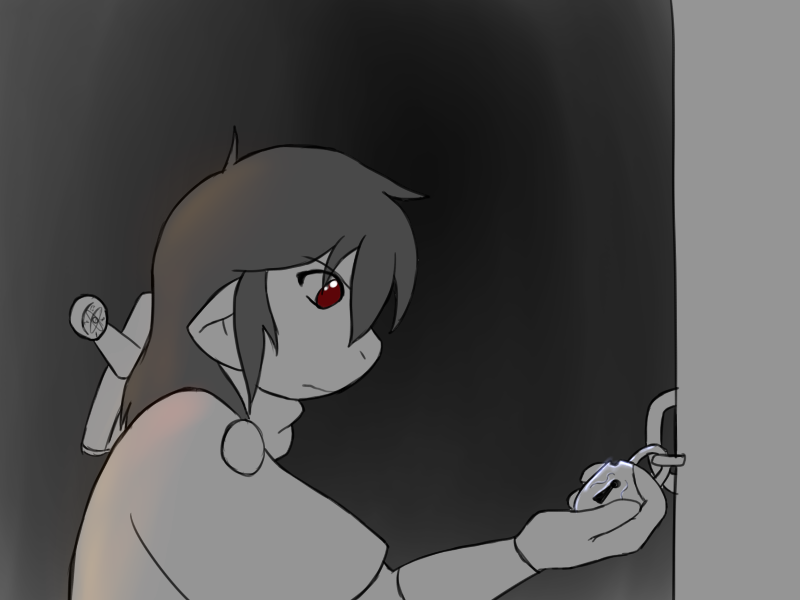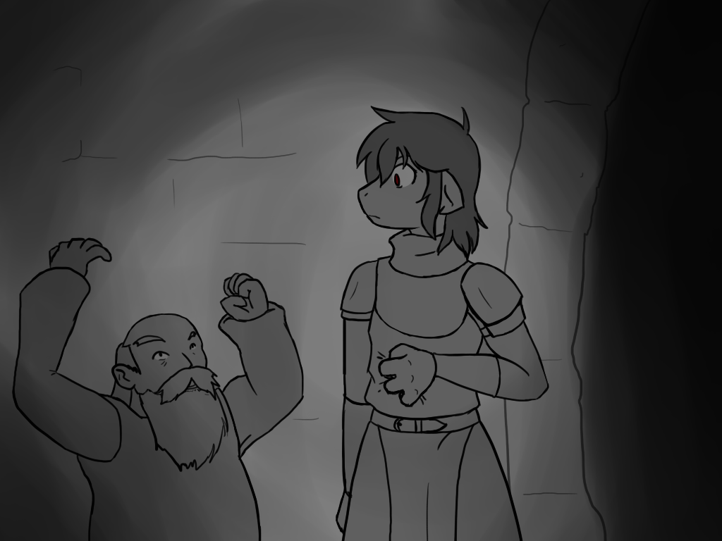 This is probably a good idea. I don't want to say the wrong thing and set him off. I motion to Shera that we should back off and start back to find the others.