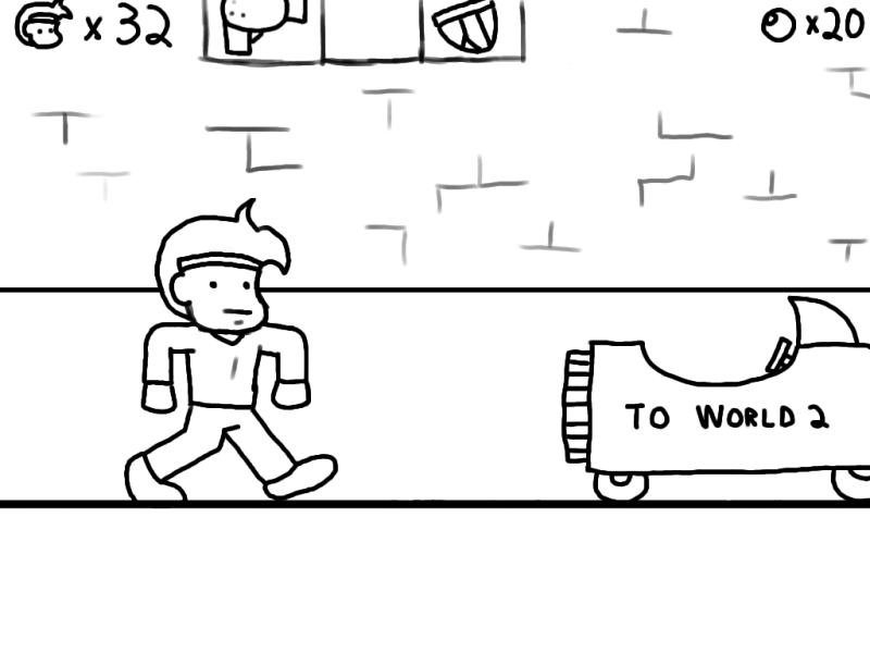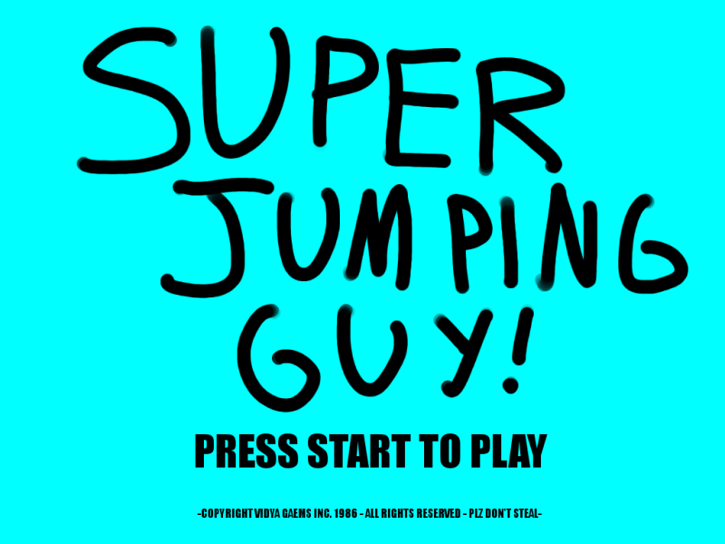 YOU are SUPER JUMPING GUY, the HERO of the KINGDOM OF WHEREVER. YOU must save PRINCESS GIRLFRIEND, your girlfriend, from a MYSTERIOUS FOE. You do not know who this foe is, because your FAX MACHINE ran out of TONER before the INFORMATION was CONVEYED.