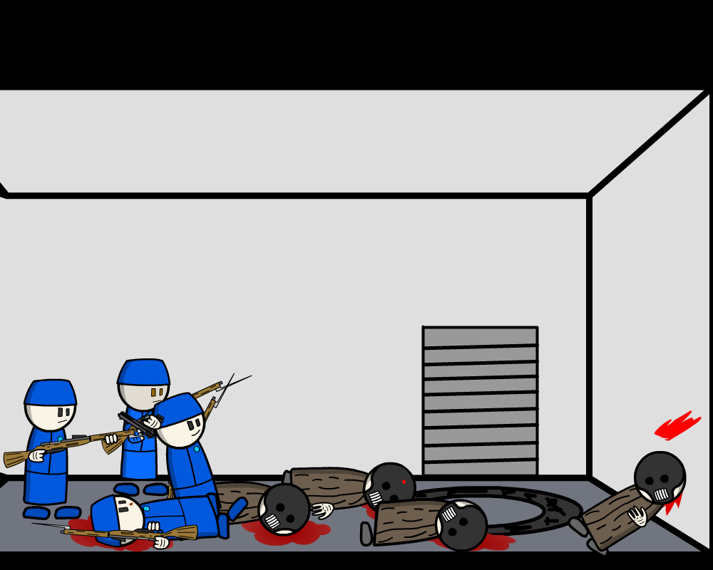 You stab the downed Soldier with your bayonet and pull the trigger. 22 Damage, he dies.