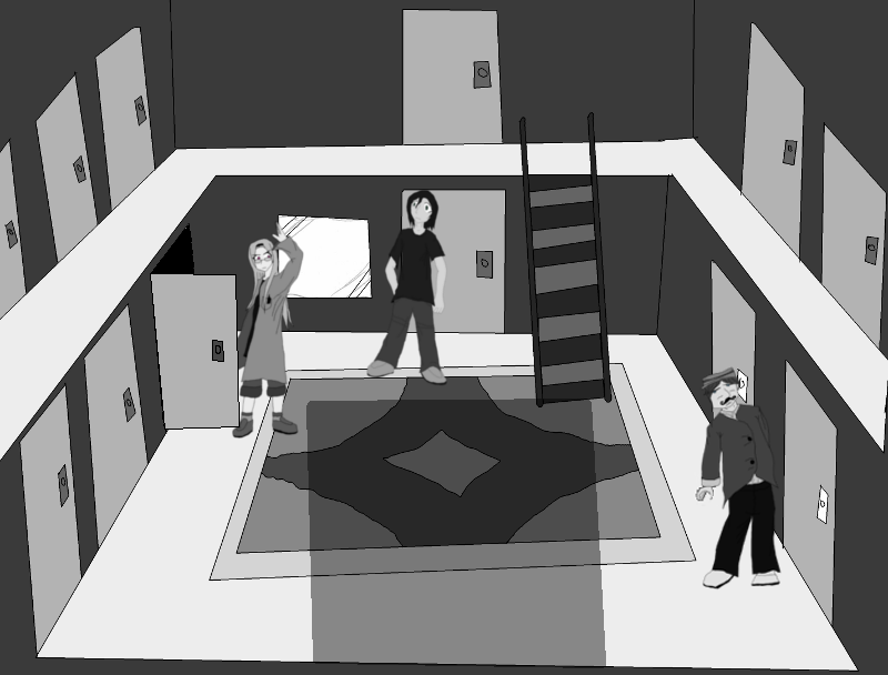 "Oh, I see that everybody has made it out. Though... it appears that one of the locks broke. Ah well, you are all probably in the foyer listening now! So everybody, one at a time, please say 'present'!"