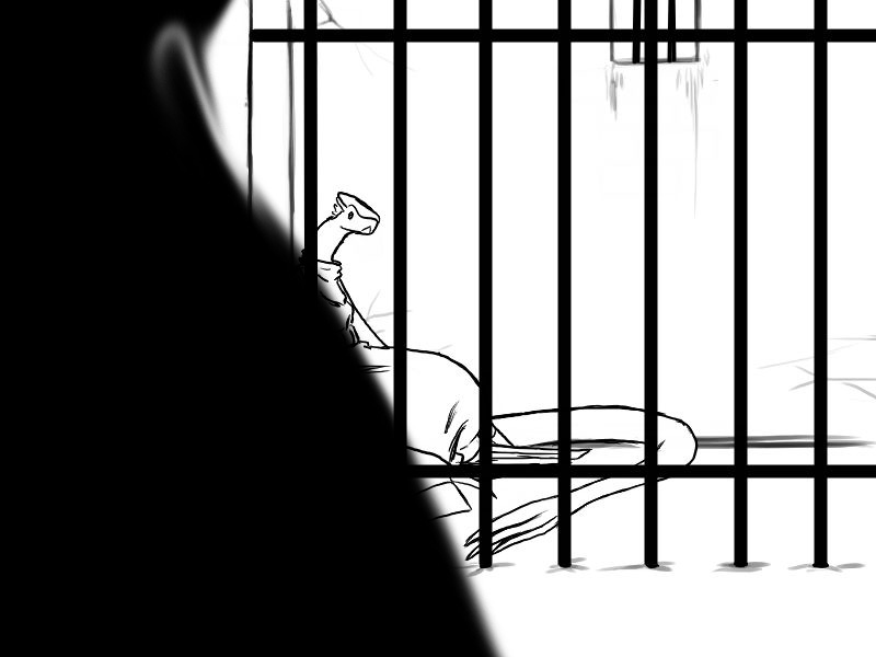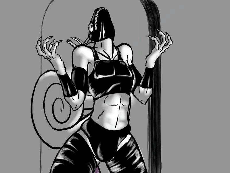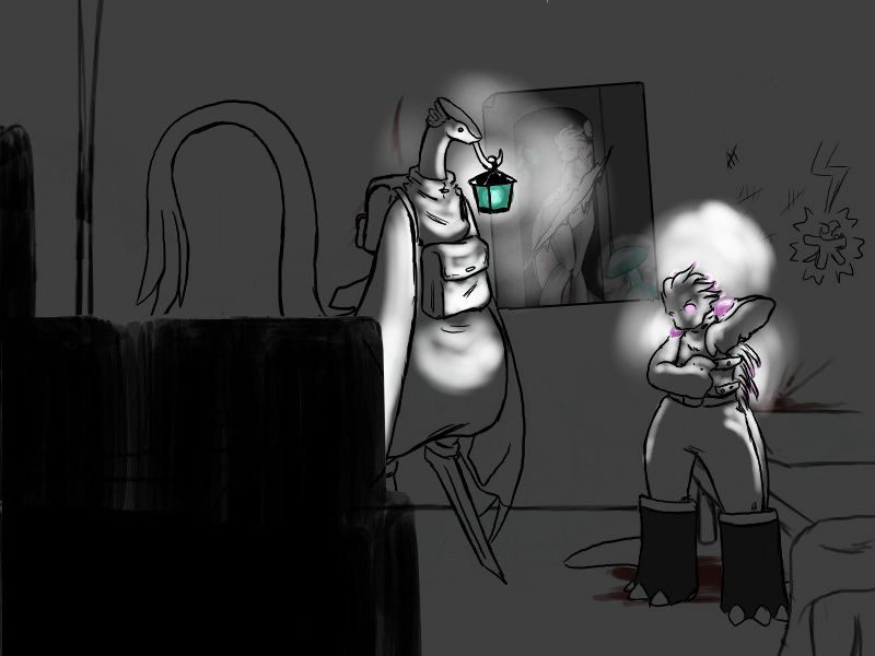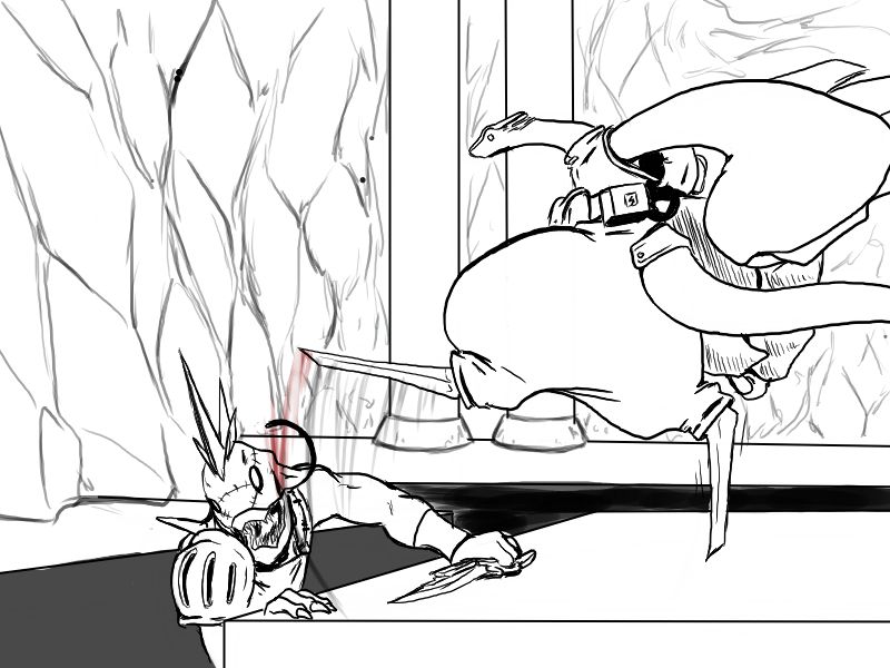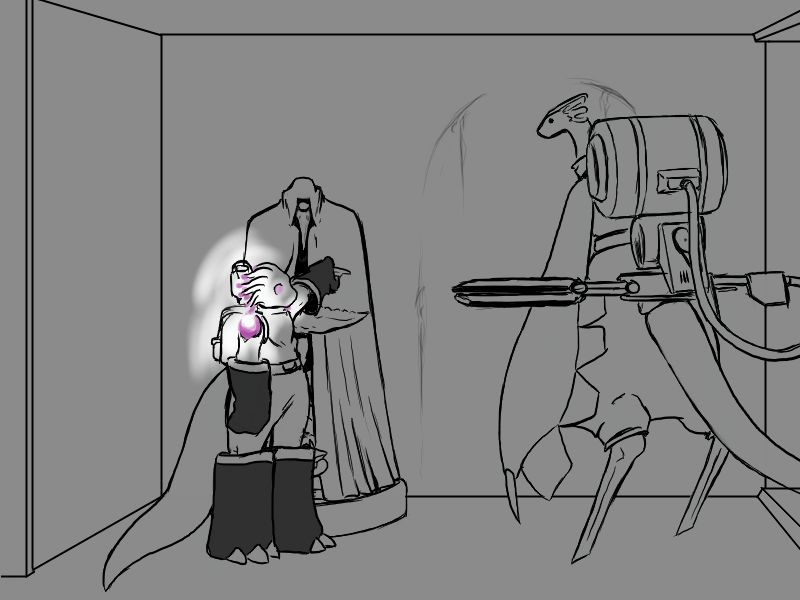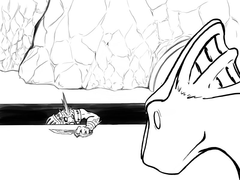 "I love to see "redemption" in stories, especially for an antagonist like this. First Tav needs to get her to stop laughing through lots of shouting and physical harm before looking her dead in the eyes and explaining to her what exactly she has done in helping raid and kill Tav's people. I like to think she's still crying over Ga'nneda underneath that cocky persona she's putting on right now, proving there's still at least some "good" in her, so to speak."