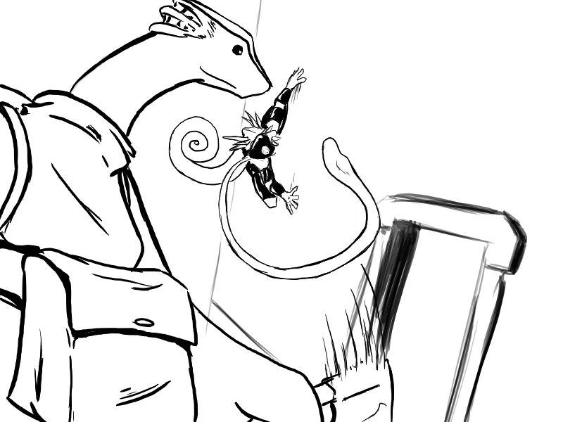 I think you've forgotten how strong Tav is (remember that unbelievably heavy gear he carried around /everywhere/ and how fast he moved with it?), how weak we are (lol bird-like structure, hollow bones), and how incredibly pissed off Kyaos is. We will get stampeded and the epic fight will ensue with us face down on the floor in pain with a broken wing or two.