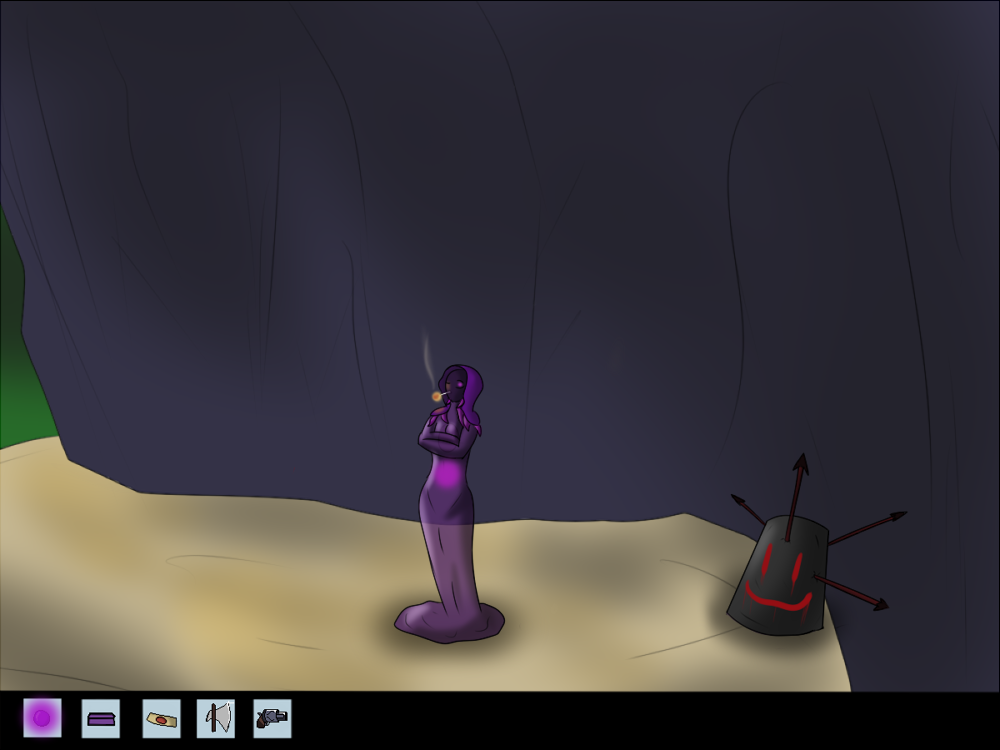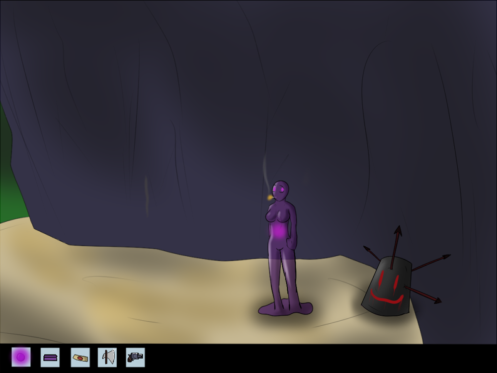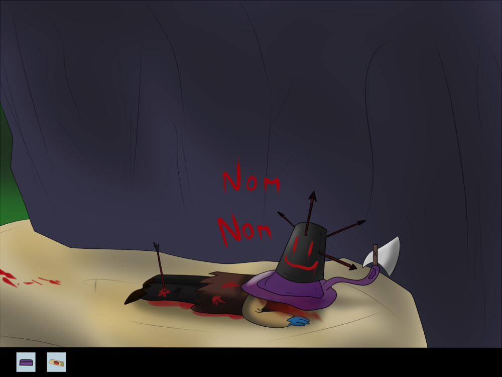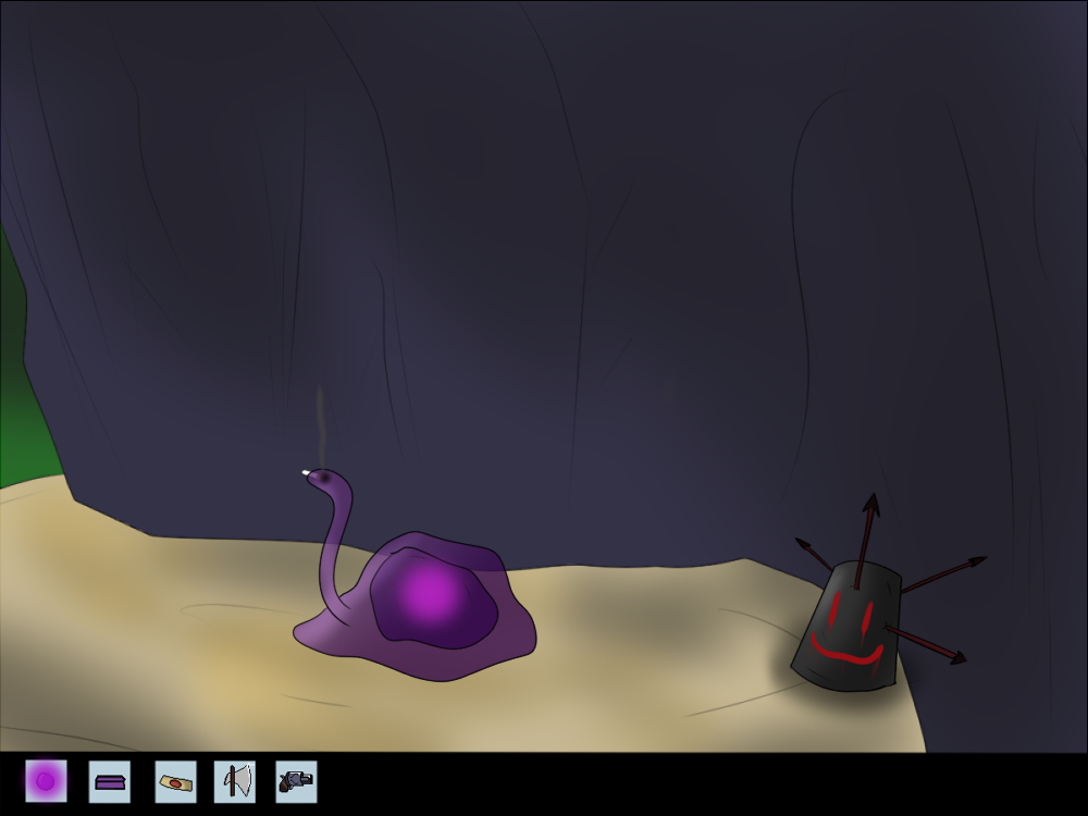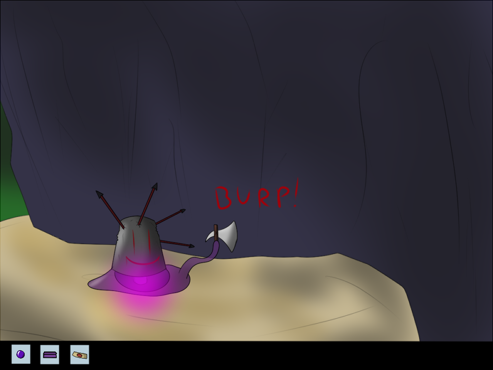 The creature impulses itself out of the hole, and the first thing it does is absorb the nearby bone and bag. It's able to digest them without problems, and the bone soothes its hunger for the moment. The bag isn't really tasty, though. It kind of tastes like metal. A shame the creature doesn't know yet the concept of bags and how to open them. Whatever was inside that one, is gone now.