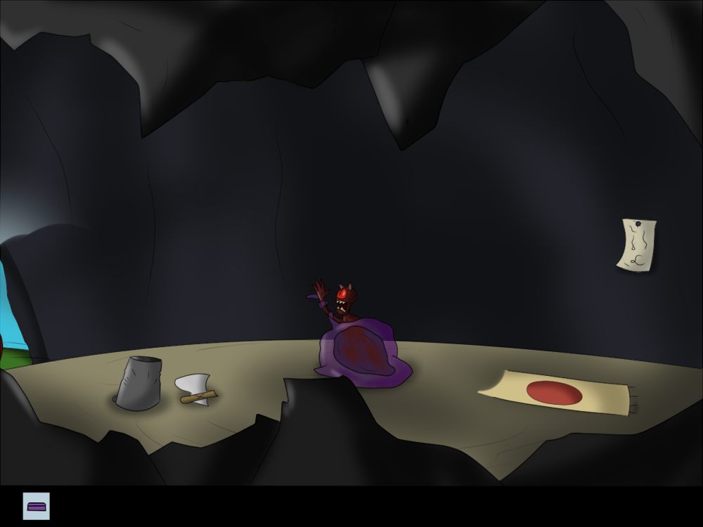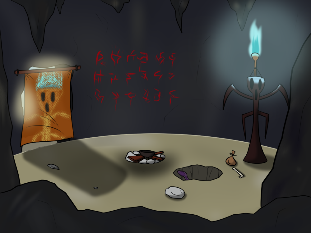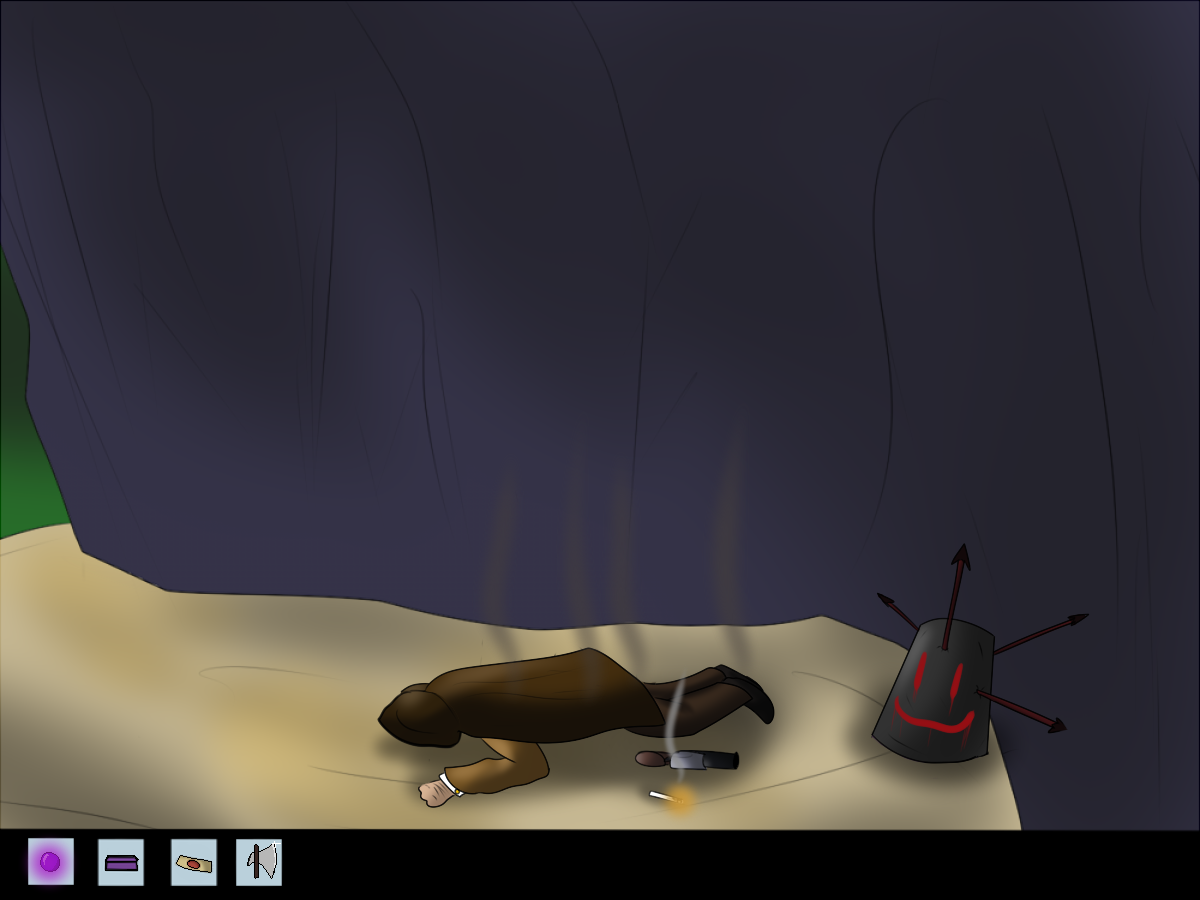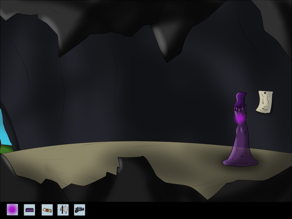 The creature impulses itself out of the hole, and the first thing it does is absorb the nearby bone and bag. It's able to digest them without problems, and the bone soothes its hunger for the moment. The bag isn't really tasty, though. It kind of tastes like metal. A shame the creature doesn't know yet the concept of bags and how to open them. Whatever was inside that one, is gone now.