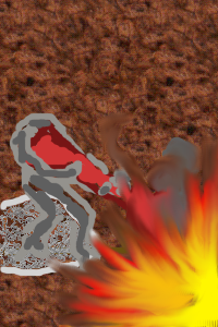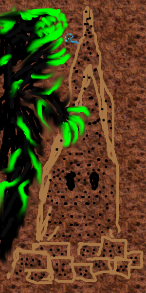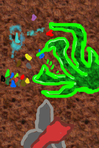 Ask the conemage if he can detect water, we need to blast to an underground river and then blast a channel for it to go down, with it exiting via one of the paths out of the cavern. If there is no underground one available, then find which of the nearby paths leads to a river / under a river and blast a new path for it to divert it to go through the town.