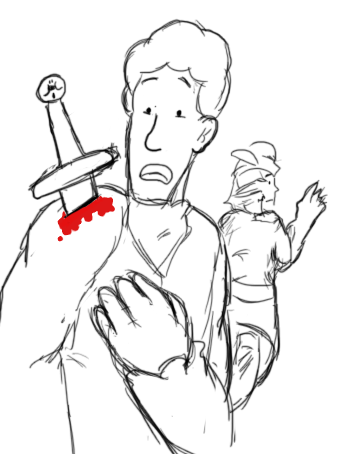 >"And godd luck with whatever travels you got ahead of you. But first, lemme ask you something. it wouldn't be right if we sent you on your way without repayin' you somehow. We don't have much, but we could probably throw together some cash for you before you go. I've got a few old trinkets from my adventuring days too, if you were interested in looking at those. Unless you have something else in mind."