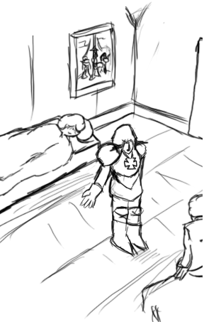 >"And godd luck with whatever travels you got ahead of you. But first, lemme ask you something. it wouldn't be right if we sent you on your way without repayin' you somehow. We don't have much, but we could probably throw together some cash for you before you go. I've got a few old trinkets from my adventuring days too, if you were interested in looking at those. Unless you have something else in mind."