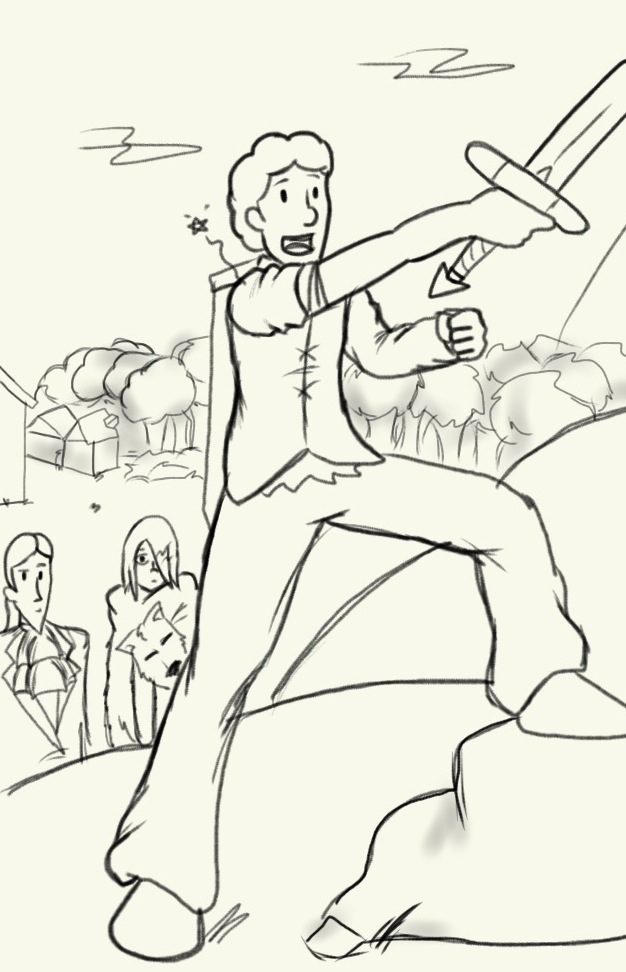 >"Heck, I don't know. First the girl has these critters attack our town, and now she wants us to let her move their camp right next to us. Our town makes it's living from travelers stopping at our taven, and no one wants to drink at a bar in a town where there's a bunch of Kobolds running around, sticking their noses in your business and making off with your stuff. We'll figure out something though, don't you worry."