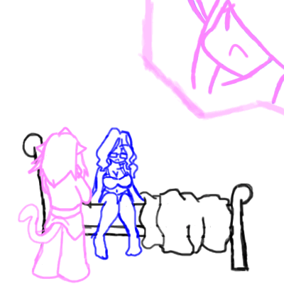 Seems it's not so empty now, things have appeared. On the left, a clothing rack, filled with any number of odd costumes. You could probably dress up as anyone with that selection!