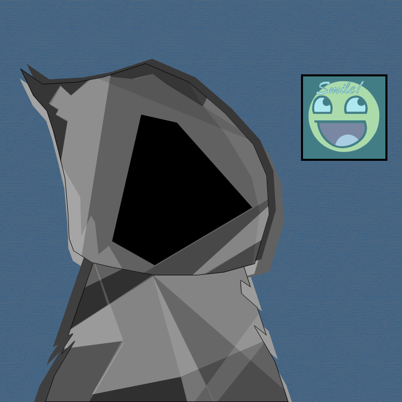 The figure silently pushes forward into my face, and sweat begins to trickle down my mustache as I peer into the void. By all accounts of light and physics, I SHOULD be able to see what's inside his hood, but it's obvious those things do not seem to apply here. Light dances over it in a way that light should not, and it is very hard to focus on it. Just trying makes my head hurt immensely.