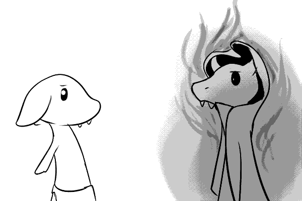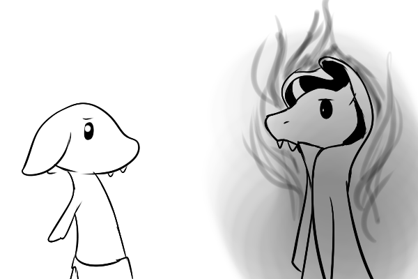 In fact, I don't remember anything before my parents left, again. They said I was sick, and needed to be brought elsewhere.. they really didn't like talking about it! And then they left me a month later without a word. I don't know why, either.. but I had to fend for myself, but I don't have many survival skills. I found a dragon, also marked on the map here.. it didn't care about worship of us kobolds, but it kept me around to do menial tasks in exchange, for scraps of food and a place to sleep.