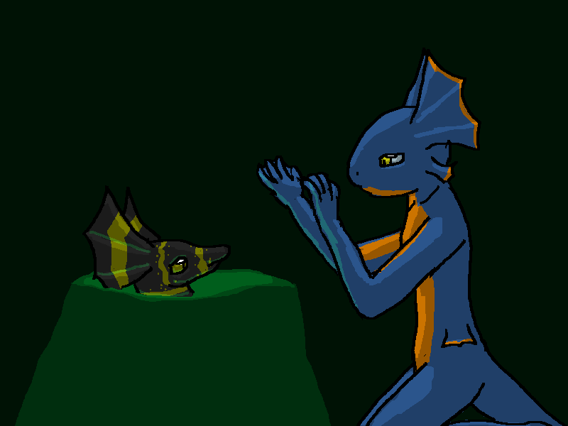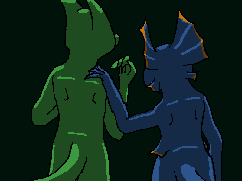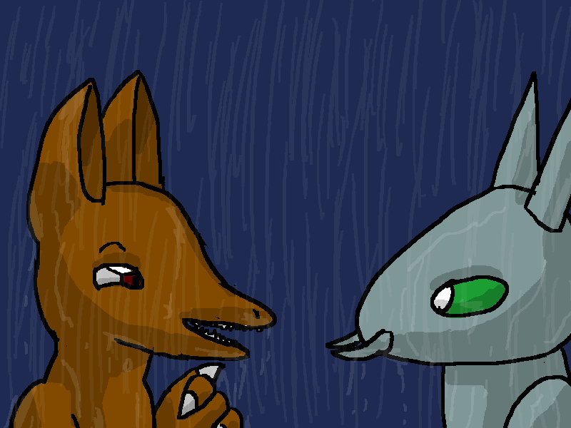 <Uh. What? What are you talking about? Oh. Oh right. Different cultures. Sorry. Been a while. Yeah, uh, we lick each other sometimes. Pick up on a lot of chemical things. Never mind. I don't think I could tell anything about you, thinking 'bout it. Sorry. You just look really, really familiar. I keep thinking we have, like, a shared history or something. But you're not a robot. Right?>