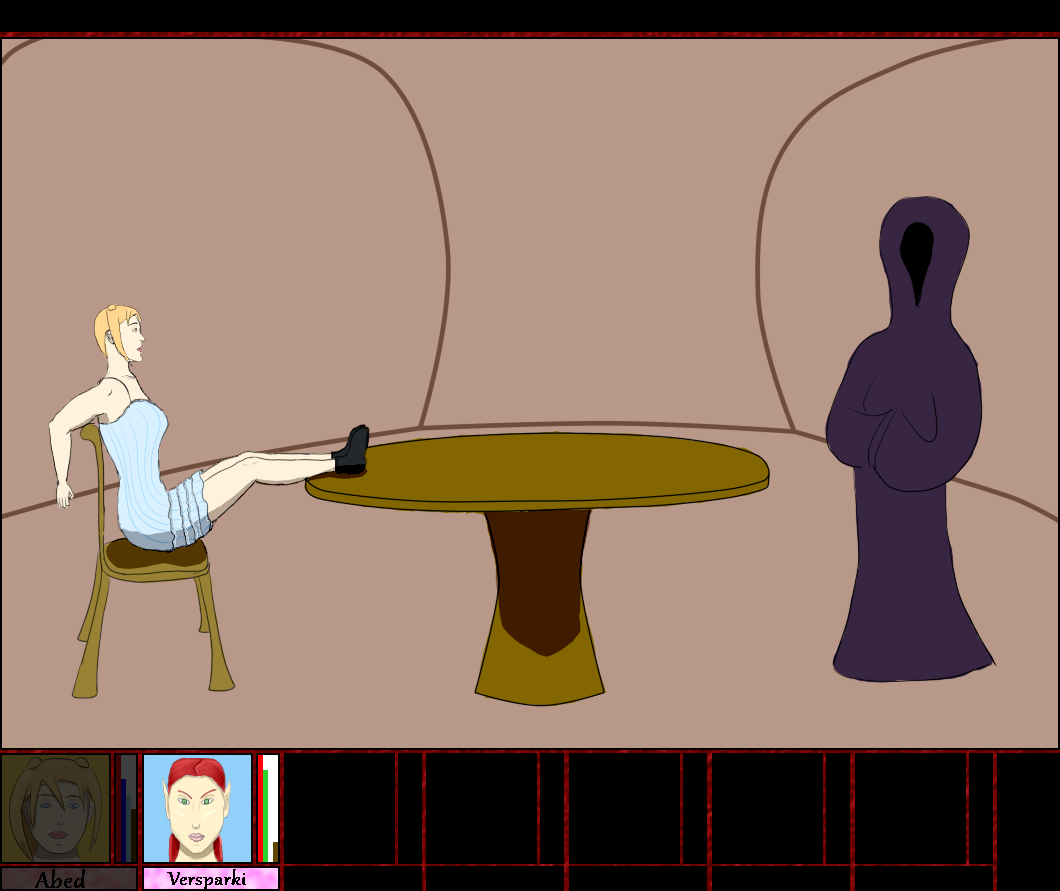 Abed waits for a few minutes, then she knocks on Maldrimir's door again.