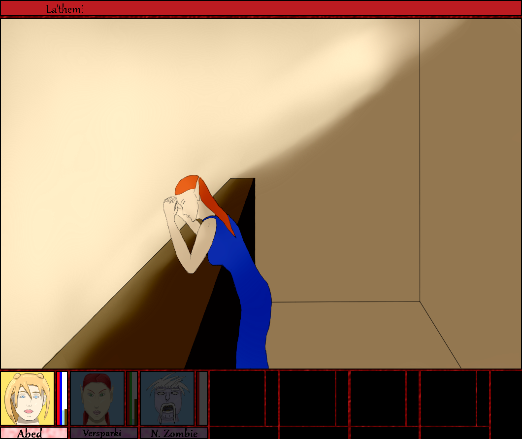 Later, Abed leaves Maldrimir's home. She sits down on the steps, puts her head in her hands, and thinks I am so damaged.