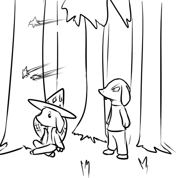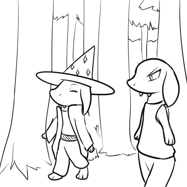 We've just entered what is officially human territory. It's guarded against the forests we're in against potential threats, but Tae's said she was pretty sure kobolds are accepted inside without hassle. She's off hunting right now, but said she would catch up before we get to the forest's edge.