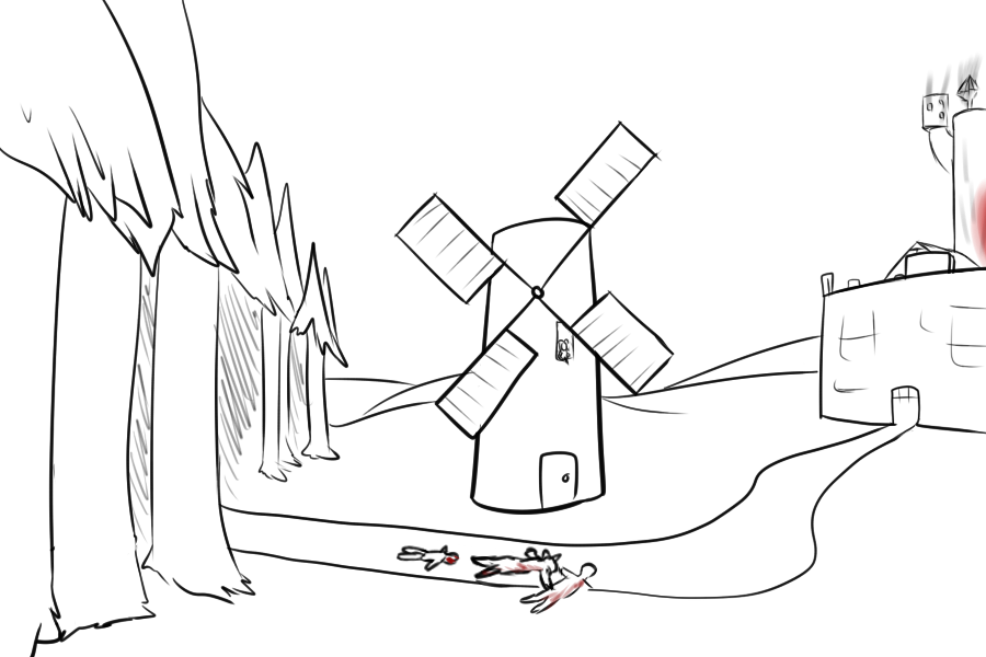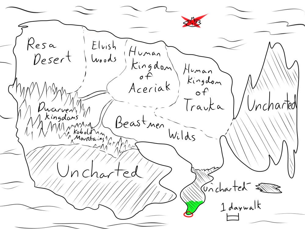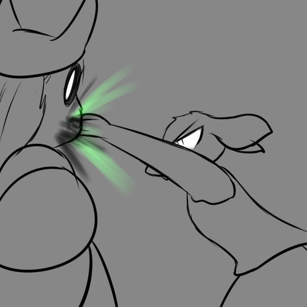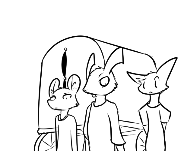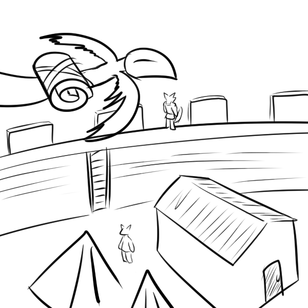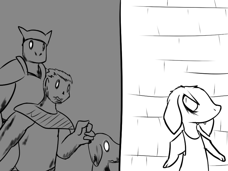 >"We're aware of the zombies, we scouted 'em massing up. So they're after you, huh? Great. Shabin ain't a name I heard in awhile, but a friend of her's is a friend of mine. Th'human town up north already fell, we found out recently. No point in warnin' a man about an incoming sword when e's already impaled."