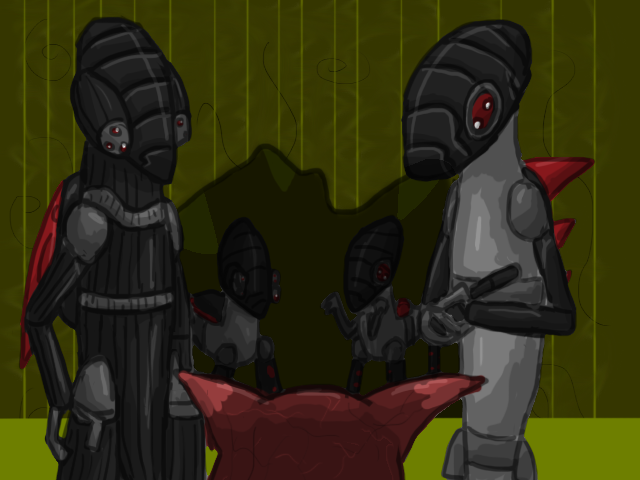 Neither of the two new drones respond. Seto96n folds his arms. "Good. Feel scared now so you don't later. Let's go over the ground rules here. First, I am your superior, and if you don't like it, you're free to go be monitor food elsewhere. Second, unless I tell you, do not lose sight of the team. We're in monitor territory now, so be prepared to question everything you see, everything you hear and everything you think to be true on a regular basis. The first weapons a monitor uses are fear and confusion."