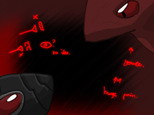 Her vision swims. No. This is far too fast. This isn't fair. She should have had more time. Out of the corner of her eye, she sees the tendrils on her face twitch and grow. The last thing she hears is Tovi480di screaming her name.