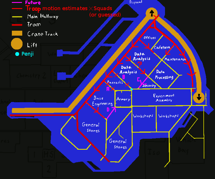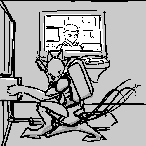 After all that is done, then you can leave. Go west, back out the route you came in originally. Unless something is blocking your way, you will follow this route through Engineering and on to Niraem in Biology Research. Once there the fastest way to administer the Counter-Suppress would be through the I.V. feeds, but only if there's a way to flush them with a saline solution to remove the residual Suppress and carry all the Counter-Suppress in. Otherwise, Mitzi will have to swim into the tank and inject the C-S directly, one at a time. Better tell her what you want Niraem to do before she goes in.
