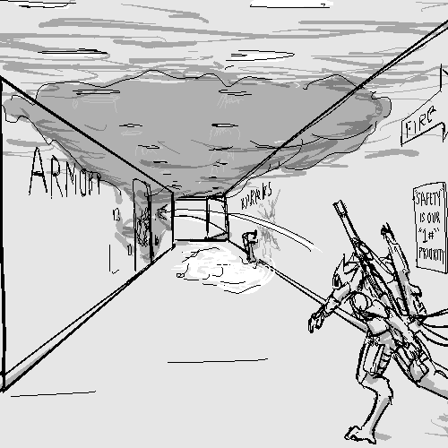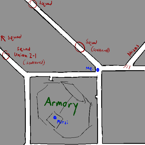 Before proceeding anywhere else, Mitzi will get a mirror, or something else reflective, to check every damn corner before going forward. Last thing you need is her stepping out in front of an MG nest.