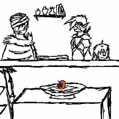 "No, NO... I've already found it. This MAGNIFICENT gem... Once I STAB this into THAT THING," He pointed to the table,"all will be suuuun...shiiiine."