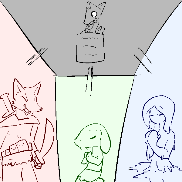 The gnoll can plead insanity, but I'm just not sure if the other two understand what God of Chaos entails! So how about it, which one would you all like to follow? I'll give the downlow of how giving divine gifts and punishments work after the decision is made.