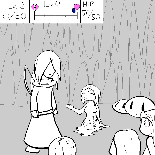 Cute. At least he said please. Lastly for the moment, an odd girl. Made of slime. A slime girl. Weird stuff, but hey, Chaos ain't a judger.
