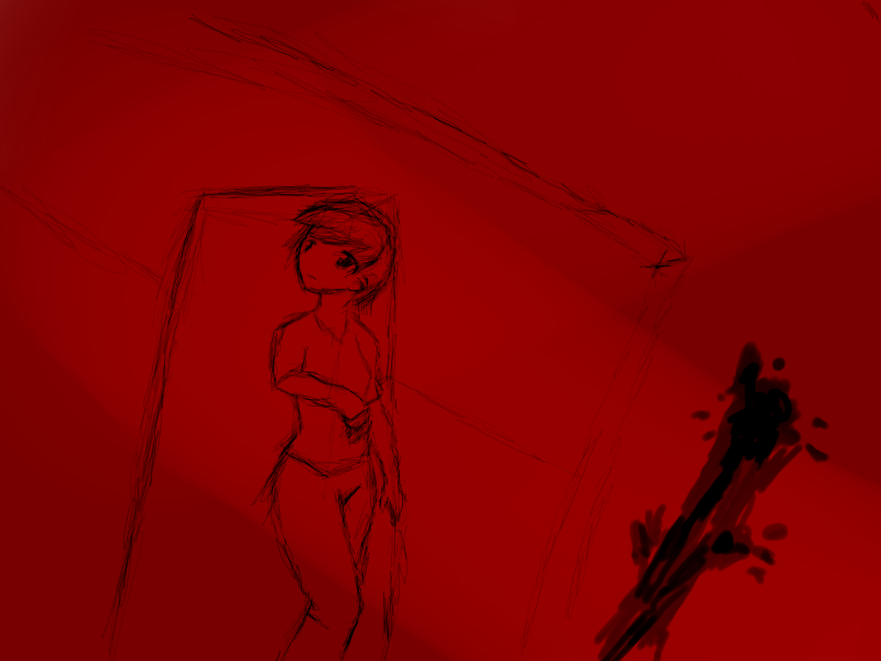 Anyway, I finally reach the break room. I noticed that the Staff'S Quarters were rather... clean. There was no blood there. The breakroom has five doors and plenty of blood around the one that leads to the lounge. The other doors lead to the elevator, the infirmary, the Staff'S Quarters and the bridge. In here there'S nothing but two benches which have been welded to the walls. Everything else was probably sucked out into space. Now this might seem vague but... Something is weird about this room. I can't see or hear anything that might warrant this feeling, but it's there. More like a gut feeling of... wrongness.