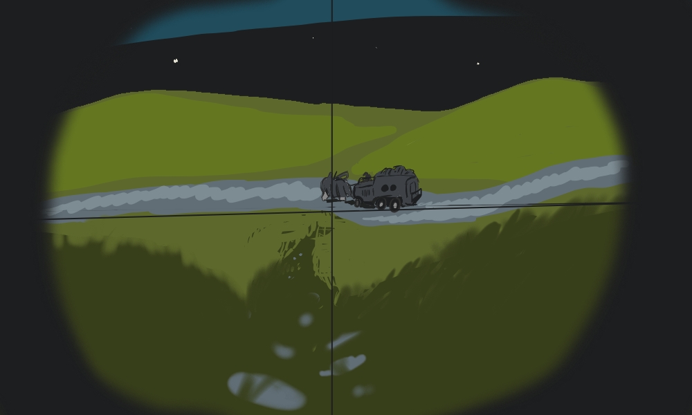 I don't trust any of them not to fuck this up, so I'll scout ahead myself. I found a good spot, and I haven't been seen yet. I'll take a look at - ok what the FUCK is that thing? I can't even tell where its face is. Does it even have one or just some fucked up wrinkles of skin?