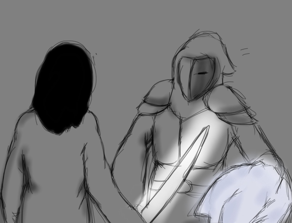 The High Knight and his companions are left speechless, doing nothing more than exchange glances, trying to formulate a proper response. Fayne spends a moment deep in thought before breaking the silence.