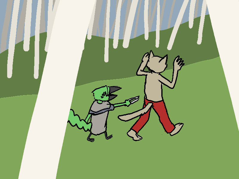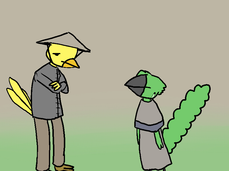 Pavolo says that he wishes to desert his army. He will can stay with birds if the do not beat him anymore. Pavolo also struggles to say that he has "warrior dancing" and "dark sight" and that he eats "small foods".