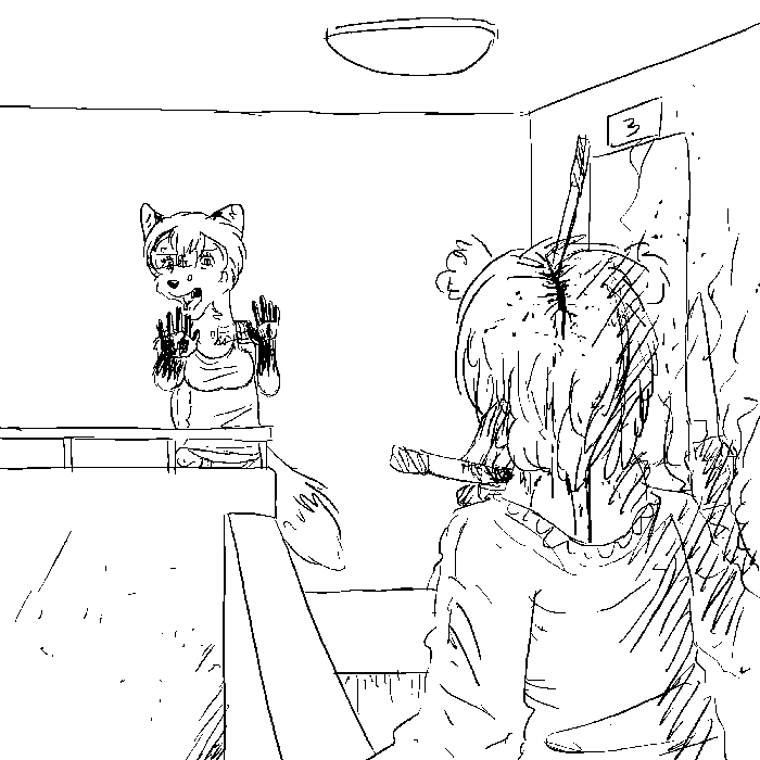 Rina proceeds to tell the officer everything: what happened at the forest, the house of the male raccoon, the hospital, and her condominium. Rina also gives everything she knows about the Darkness and the Light. She, however, does not mention the Darkness's blaming of her for everything. The officer does not look convinced even if he is paying close attention to her words.