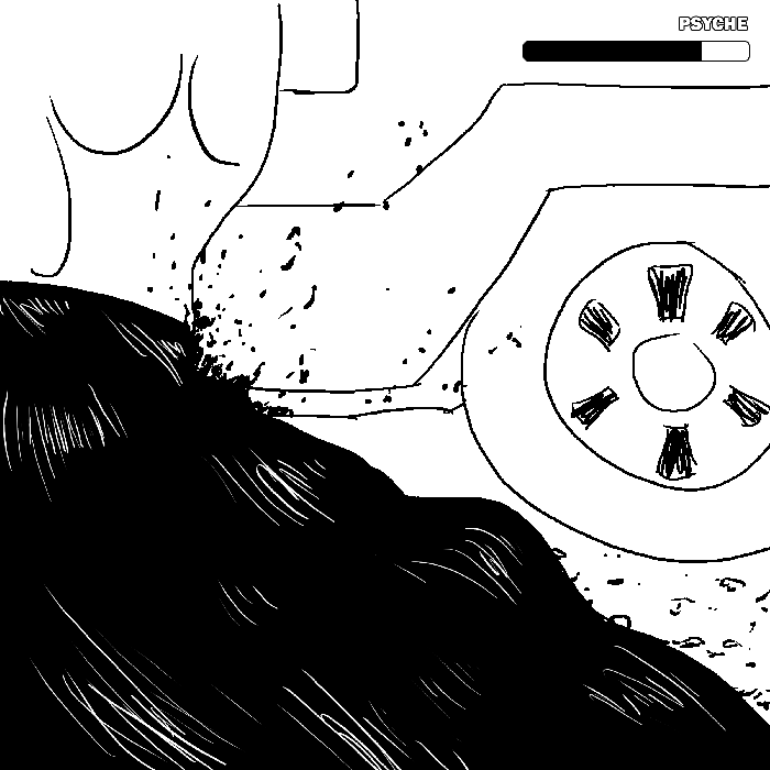 "Could you point that gun away from me, please? It's hard for me to think with it all in my face." He glares back up at Rina.