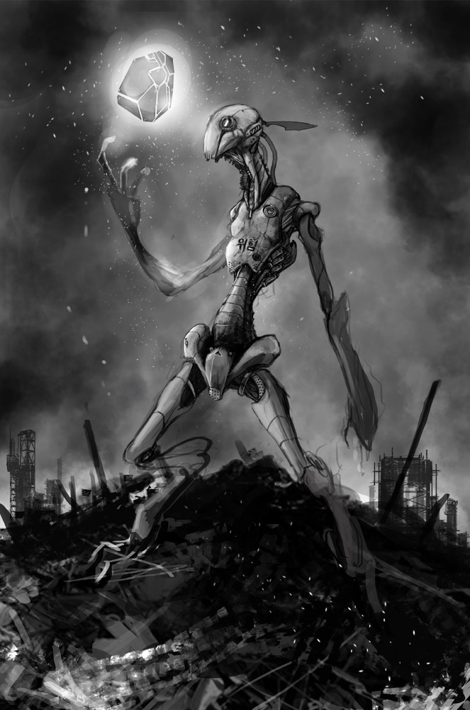 And the woman rolls over. Where once was destroyed, erased flesh is now softly-furred chest. Her fist slams directly into the beast's jaw, a blow that sends its front half up. She scrabbles out from below as Harumda frees himself, and she grabs her blade. Both of them charge together, side by side as the creature falls back down.