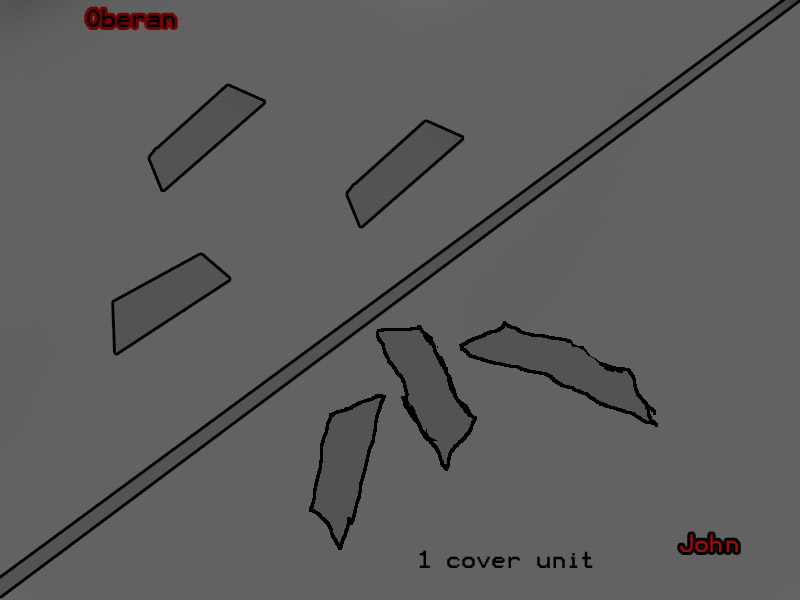 “The weapons are real, the death’ll be real, and we’re both pussies if we don’t try our hardest. There’ll be cover we’ll simulate with this room. You’ll have a chance to place it later. You may want to turn off your pain reception, John. Now choose your weapons and let’s get this over with,” he says, gesturing to the table.