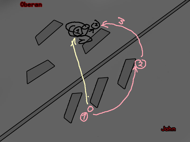 "No," replies Oberan. “You get a gun and a melee weapon of your choice according to normal rules. The handles are all rubber, so don’t worry about my electric blood. It’s traditional hazing for a newly elected sergeant to duel his First Hand as a bonding experience and to prove his worth in combat. I figured we’d get it out of the way sooner rather than later. It’s an opportunity to vent the bad blood we have for each other right now.