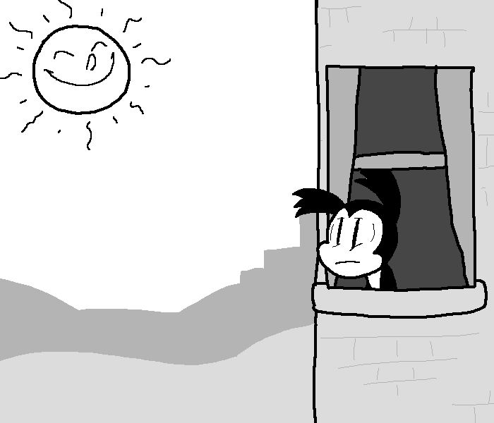 You did just wake up, and you are feeling pretty GROGGY right now. You wish the SUN wasn't so BRIGHT right now. You would say something to him, but the last person who DISPLEASED THE SUN ended up with quite the SUN BURN.